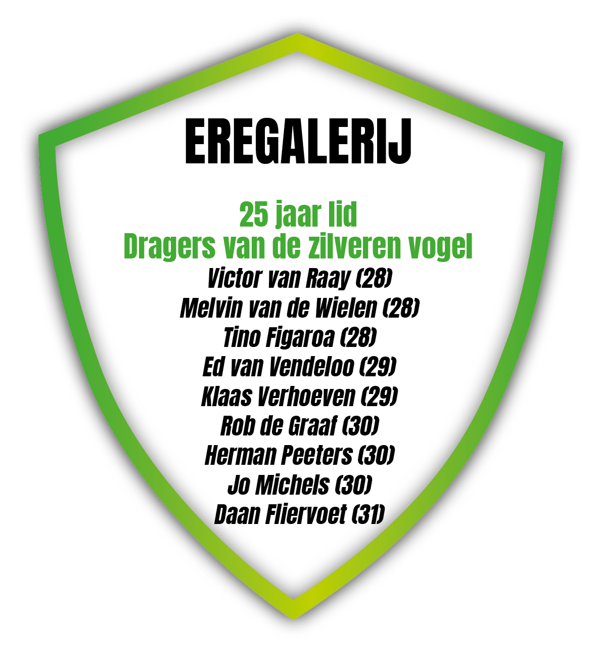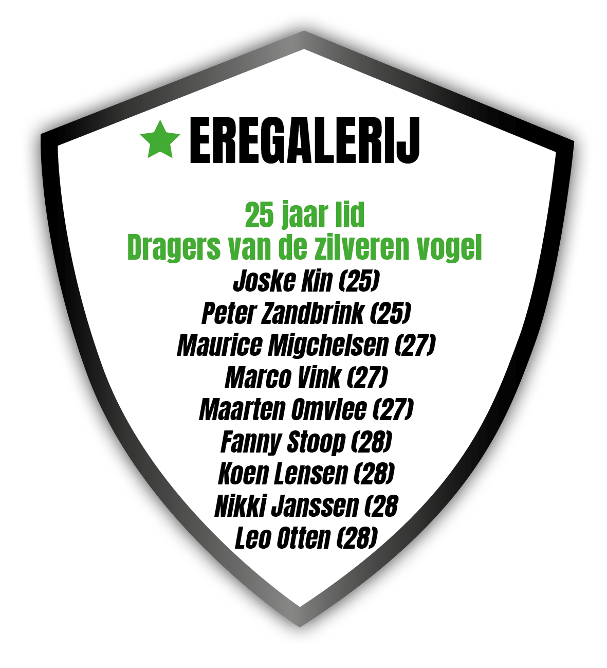 Dit jaar zijn voor het eerst ook vrouwen opgenomen die 25 jaar lid zijn.