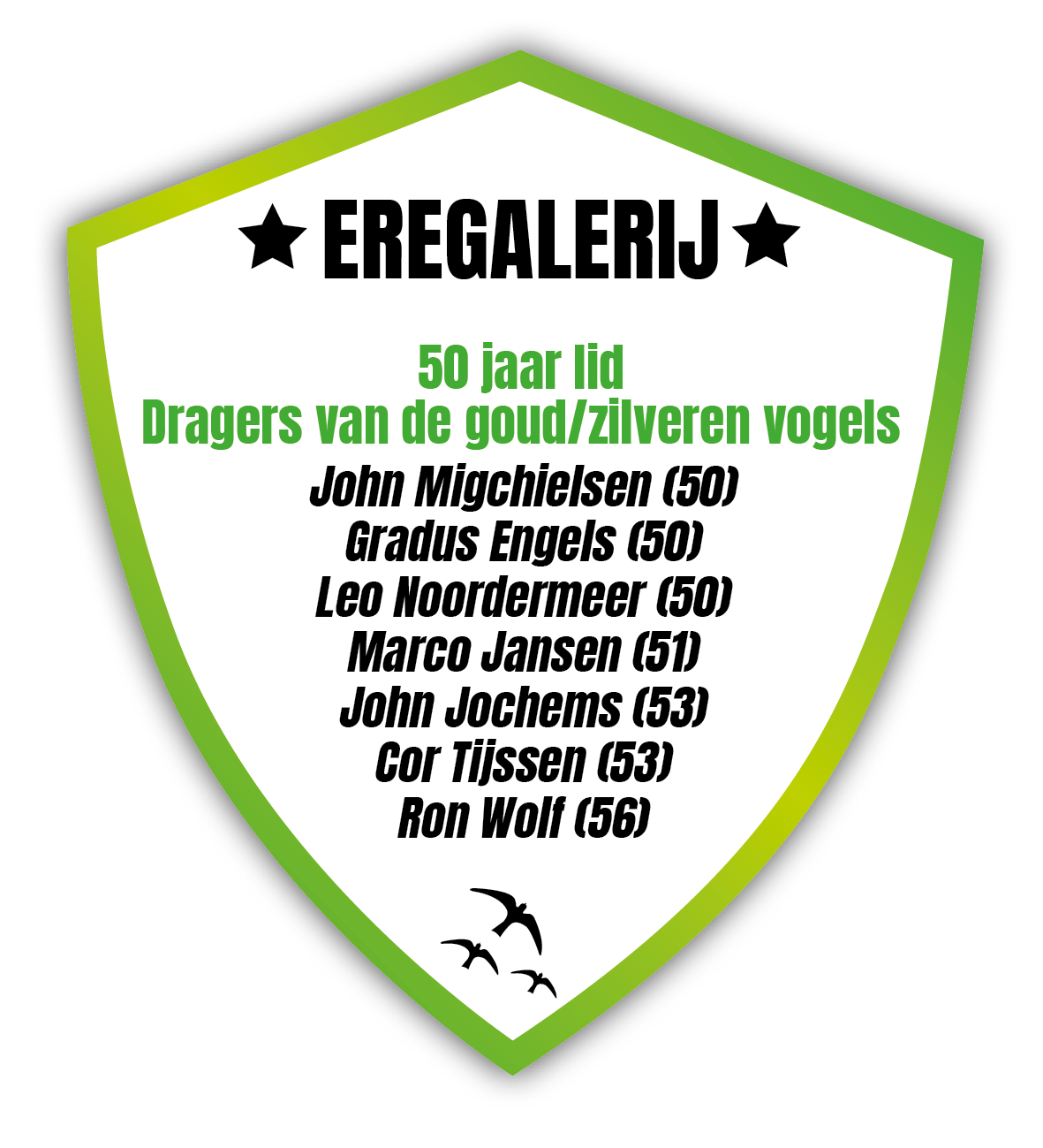 Onderstaand overzicht toont alle nog levende leden die een aaneengesloten periode lid zijn van VV Trekvogels. Achter ieder lid staat het daadwerkelijke aantal jaren lidmaatschap vermeld. De peildatum voor dit overzicht is 1 juli 2025.
